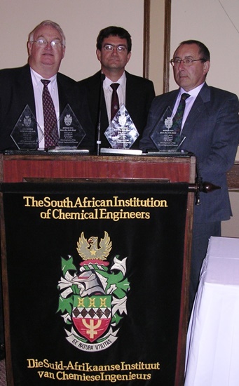 Jon Buzzard, Prof. Mike Heydenrych (Chairman of SAIChE) and Prof. Dave ArnoldSAIChE - 2004 Award Dinner