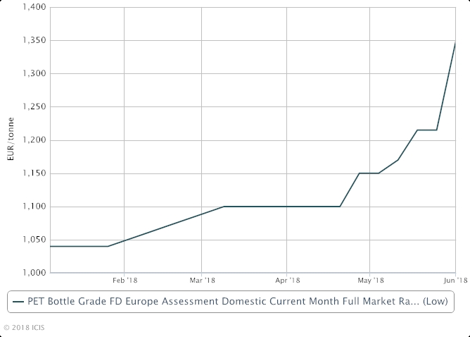 Europe PET price soars 30% in first five months of 2018 on unprecedented tightness